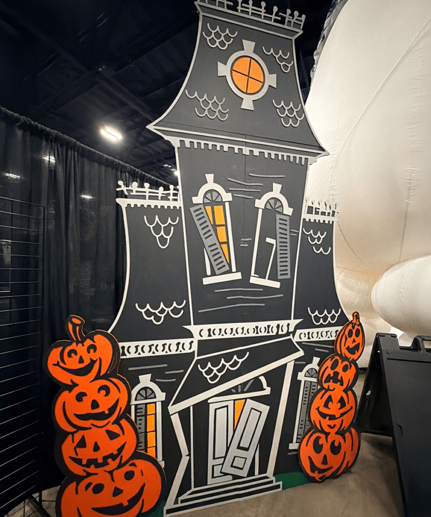 A classic haunted house silhouette brought to life with bold shapes and striking detail, this coroplast façade captures the essence of a timeless Halloween fright. Jagged rooflines, darkened windows, and eerie cutout features create a looming presence that feels both playful and foreboding.